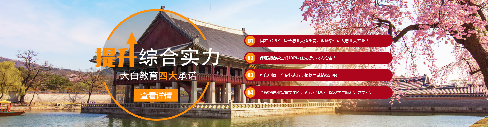 通过大白教育直接入读忠北语学院,再入忠北大学专业,有100万韩币特别奖学金,另根据TOPIK等级还有学费减免奖学金,更有机会得到学费全免。